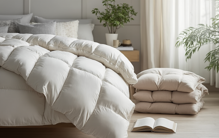 - Kammeraufbau – Achte auf Kammern oder Baffle-Box-Konstruktion zur gleichmäßigen Verteilung der Füllung; verhindert Kältebrücken und Verlagerung. Solider Kammeraufbau verbessert Loft und sorgt dafür, dass dein Federbett warm bleibt.